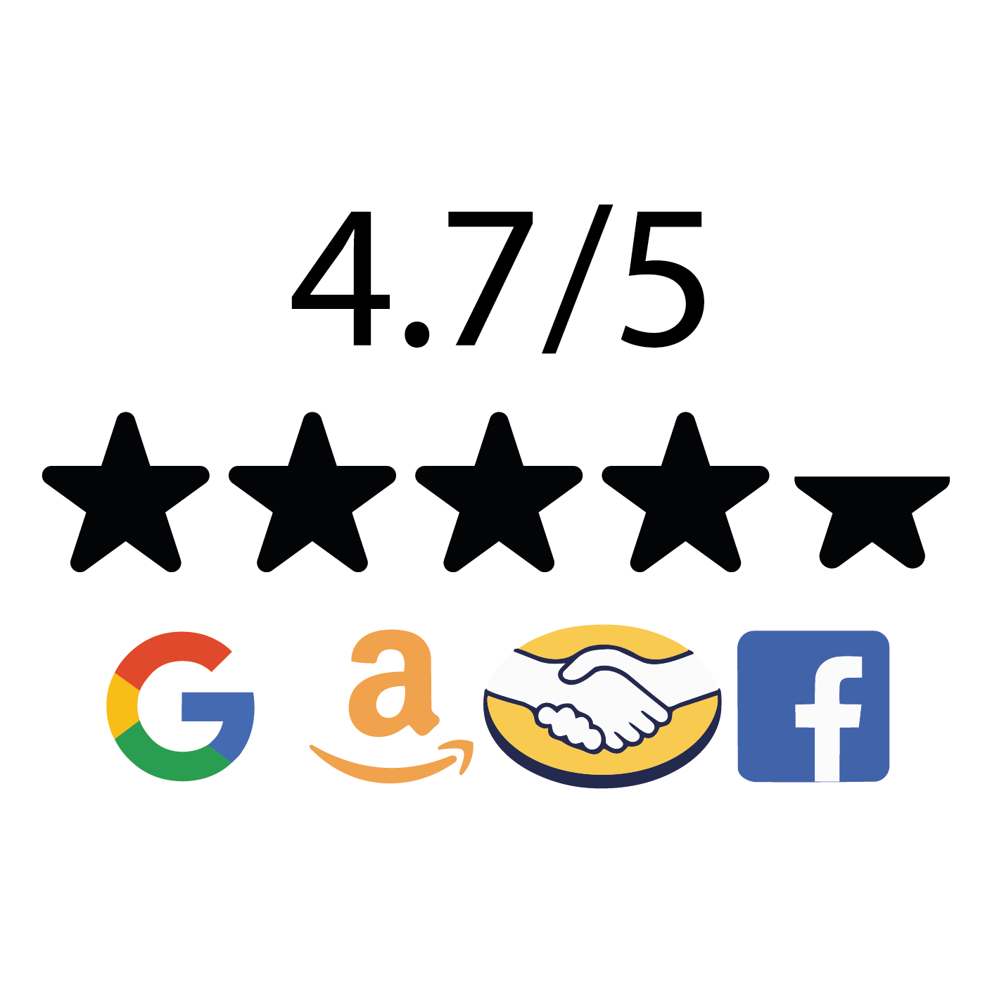 4.7/5 estrellas de calificación en marketplaces y redes sociales